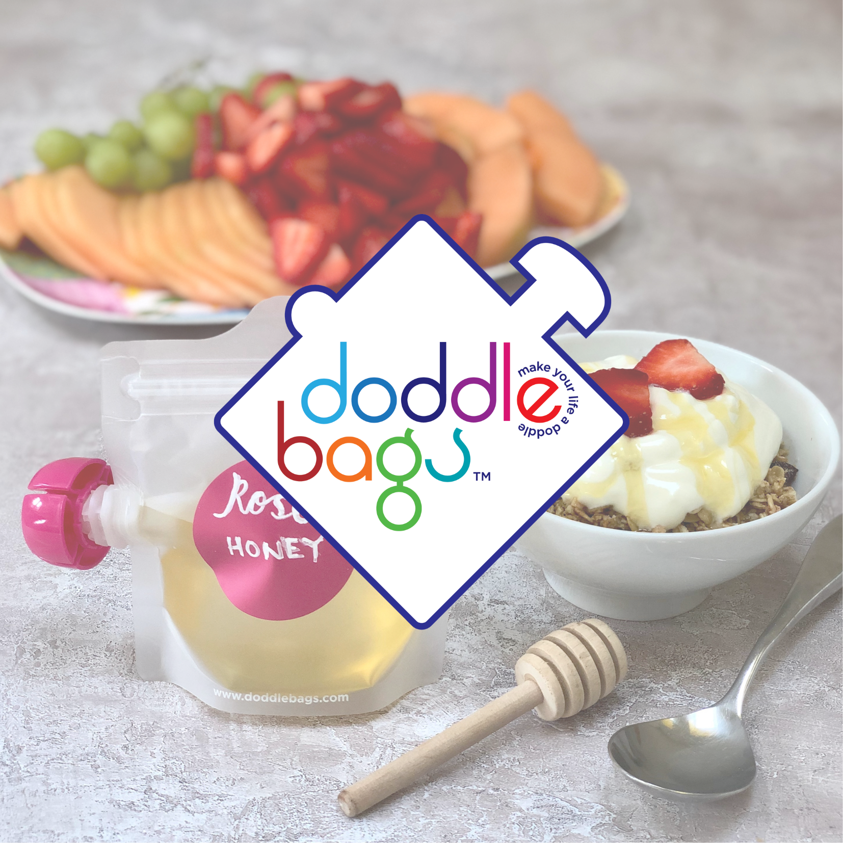 Doddle Bags est une marque anglaise qui fabrique des gourdes réutilisables 100ml et 200ml bien pensées pour les repas, et permettant d'emporter partout compotes, yaourts, purées… Les gourdes sont multi usages : les parents les utilisent aussi pour les loisirs créatifs (peinture, perles, gommettes.).